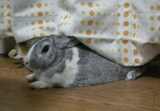 カーテンの下に入ると耳が見えないから なんか別の動物みたいでしょ? (ツチノコですか?・・・by