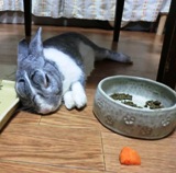 食い気より眠気・・・ 大好きな人参も、途中でちょっと休憩。